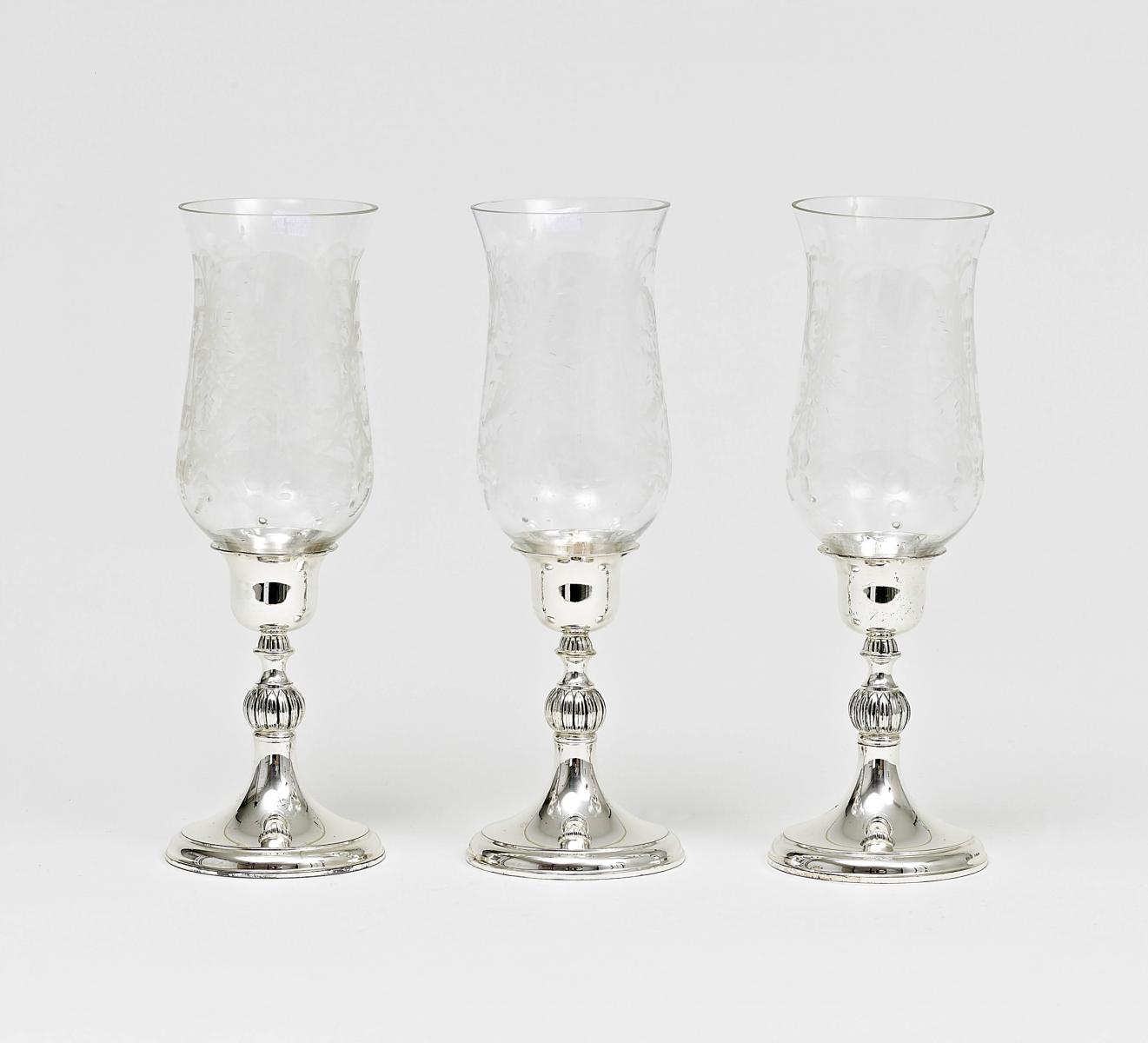 Silber, gefüllt. Glas. H.14/28,5cm. {Beil.:}Ein Ersatzglas. Zustand A/B. Ein Glas beschädigt.