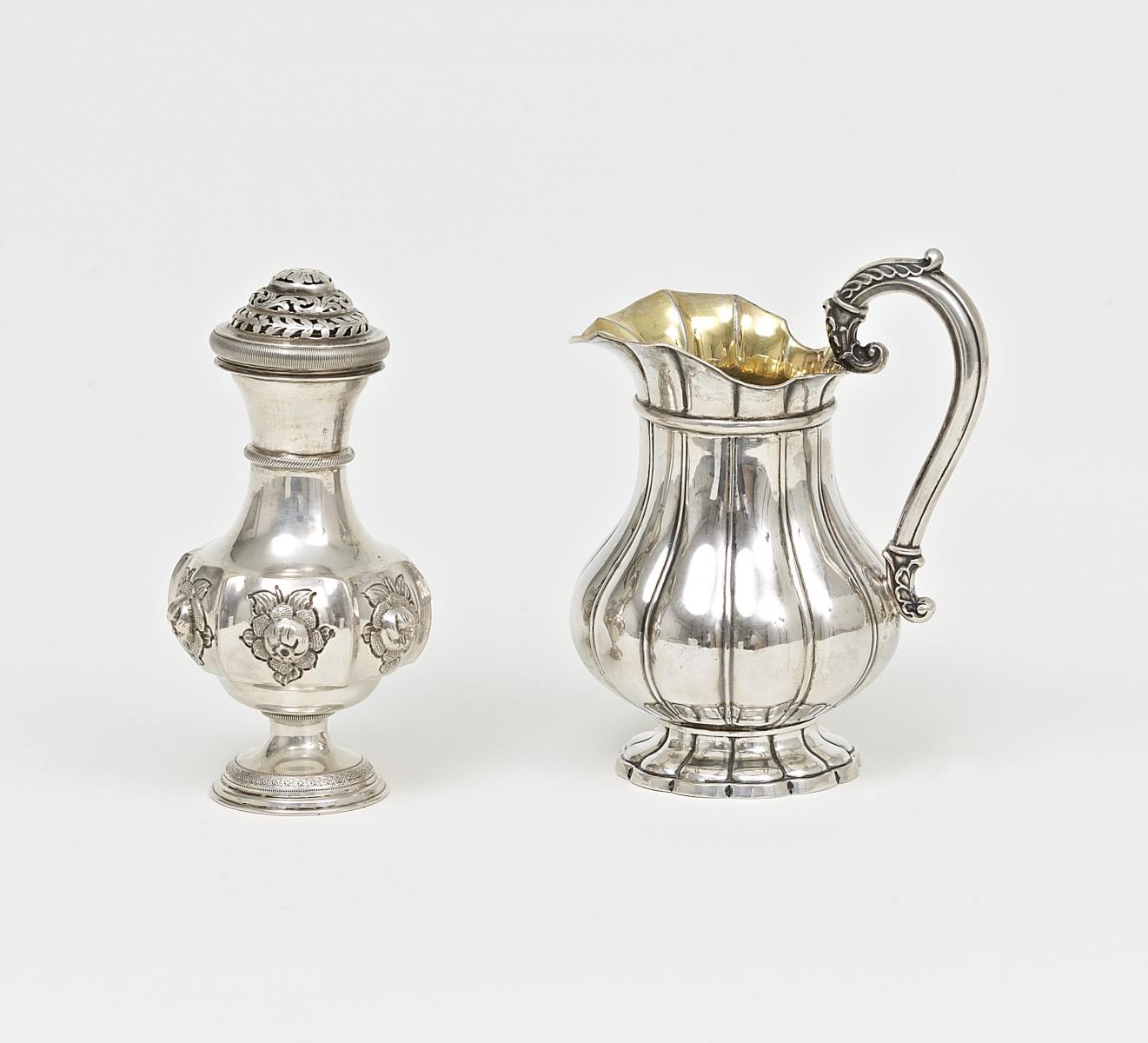 Silber, Innenvergoldung. H.15,5cm. {Beil.:}Zuckerstreuer. Wohl Wien. Ca.365g. Zustand B/C.