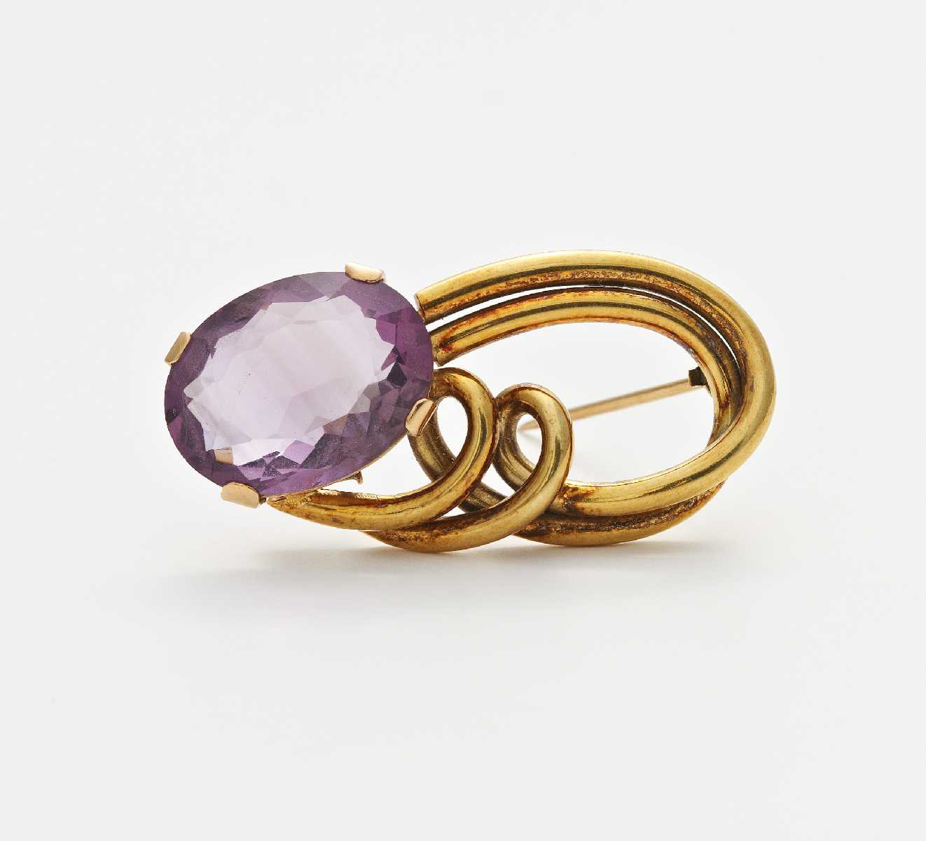 585/- Gelbgold, gestempelt. 11g. 1 oval facettierter Amethyst ca. 15,47ct, H x B= 4,5 x 2,6cm.~