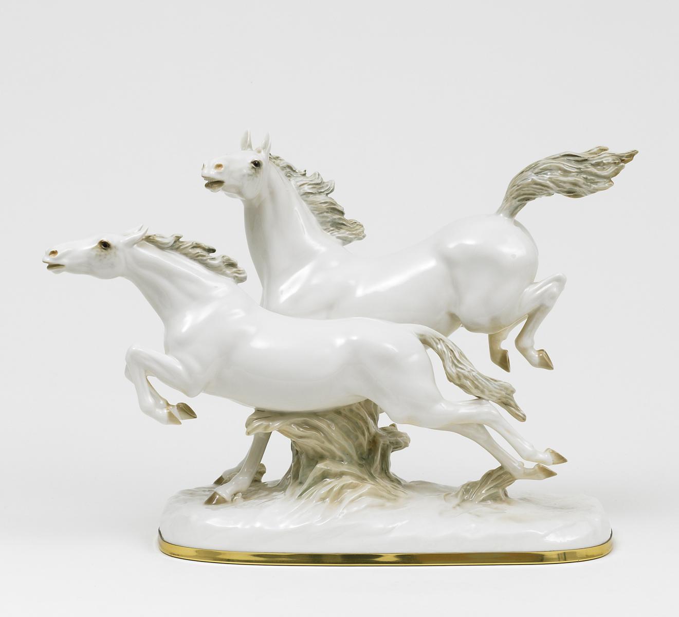 Porzellan, Unterglasurdekor. Goldrand. H.39, L.58cm. Zustand A.