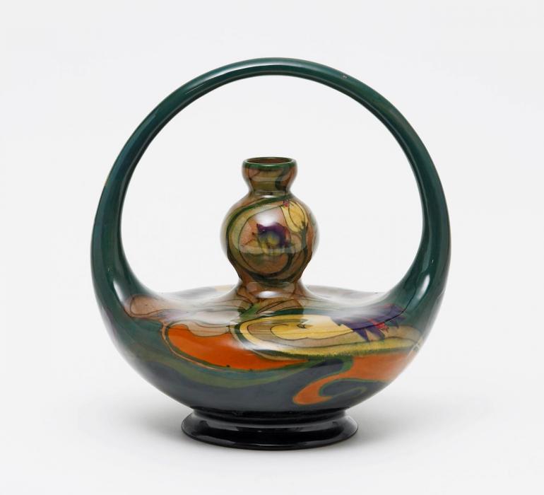 Vase mit gebogtem Henkel.