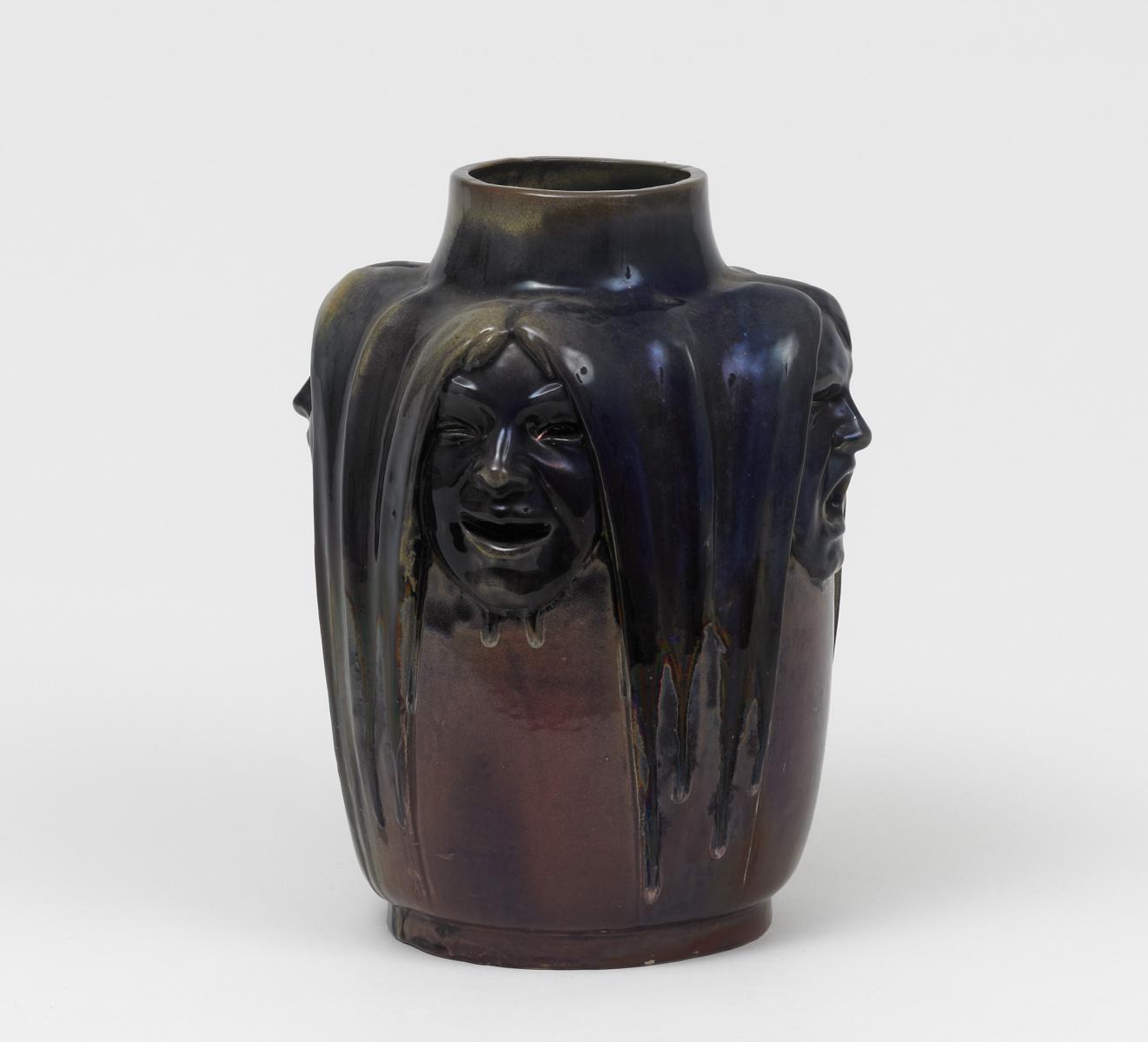 Heller Scherben, farbige Glasur, leicht irisierend. H.33cm. Zustand B.