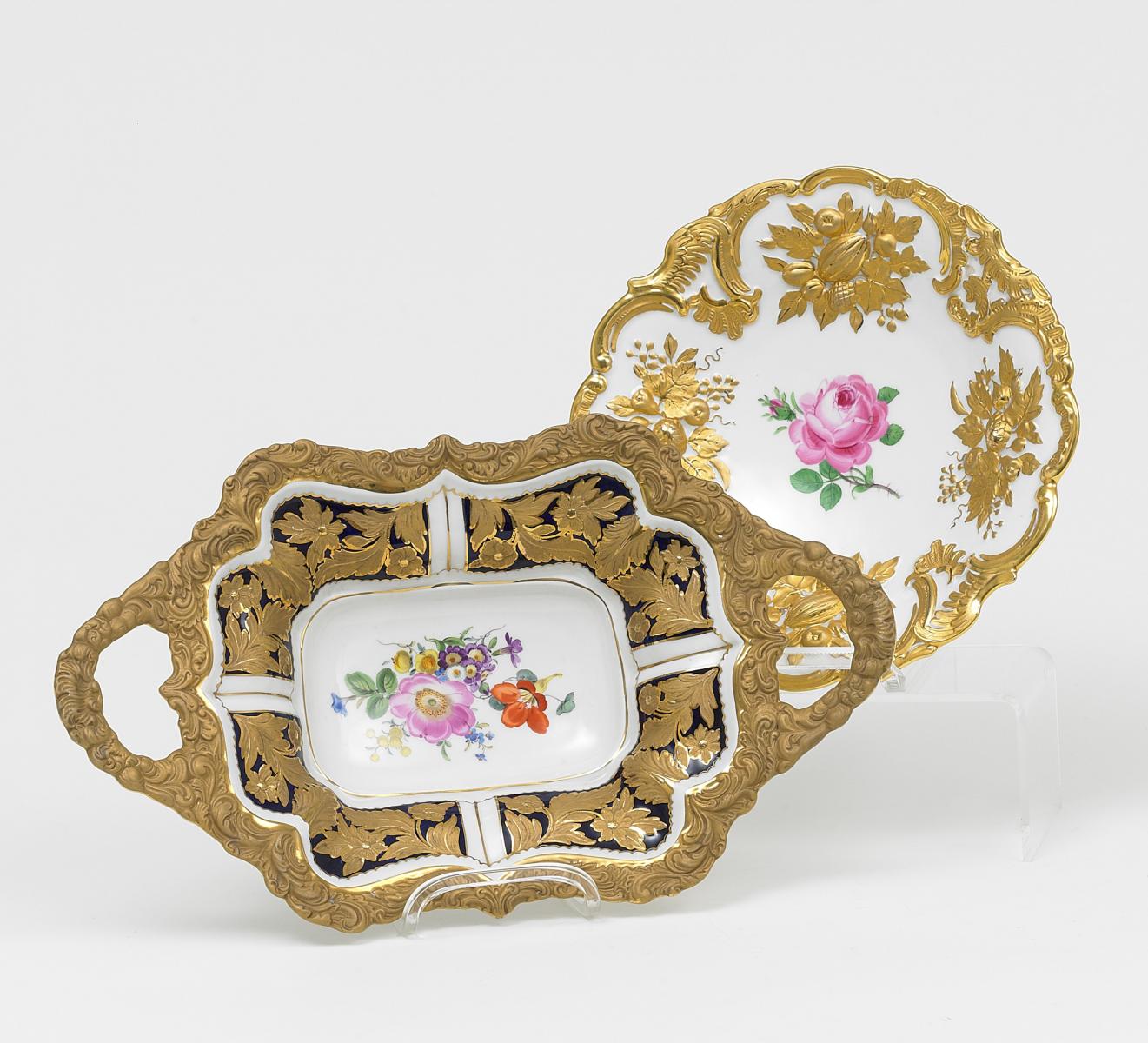 Porzellan, farbig staffiert mit Goldrelief. + 23,5/9x35x21cm. Zustand A/B.