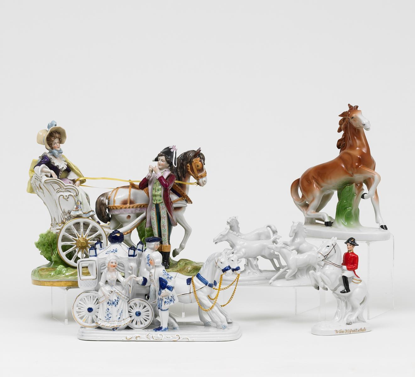 Porzellan, weiß bzw. farbig und tlw. gold staffiert. Zustand A-B.