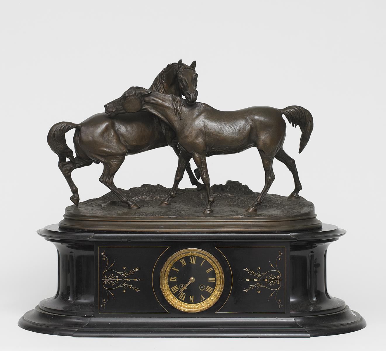 Große Pendule mit Pferdebekrönung.