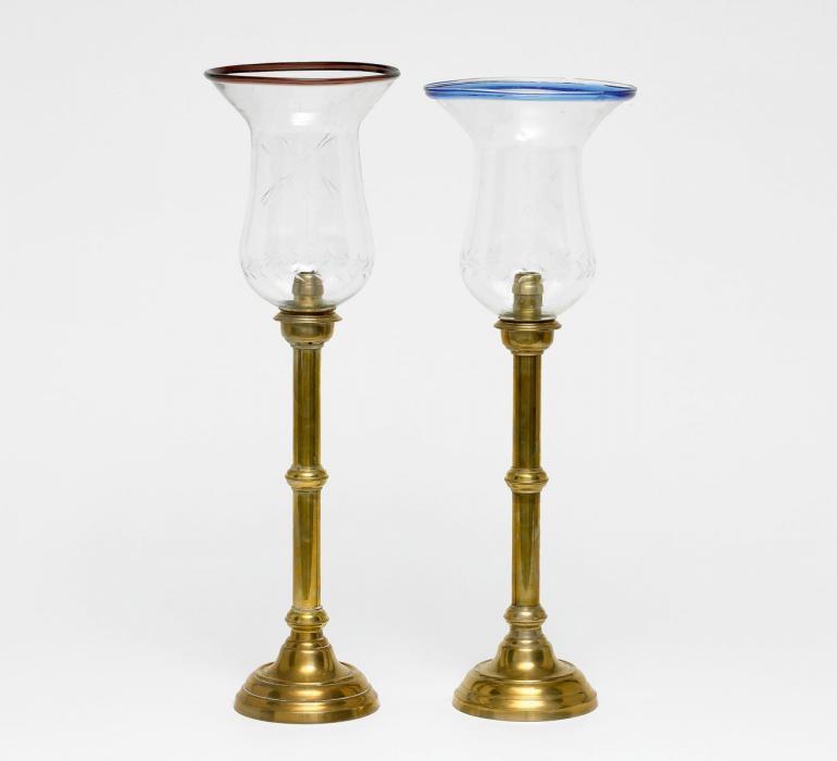 Messing und Glas. H. ca.55,5cm. Zustand B/C.
