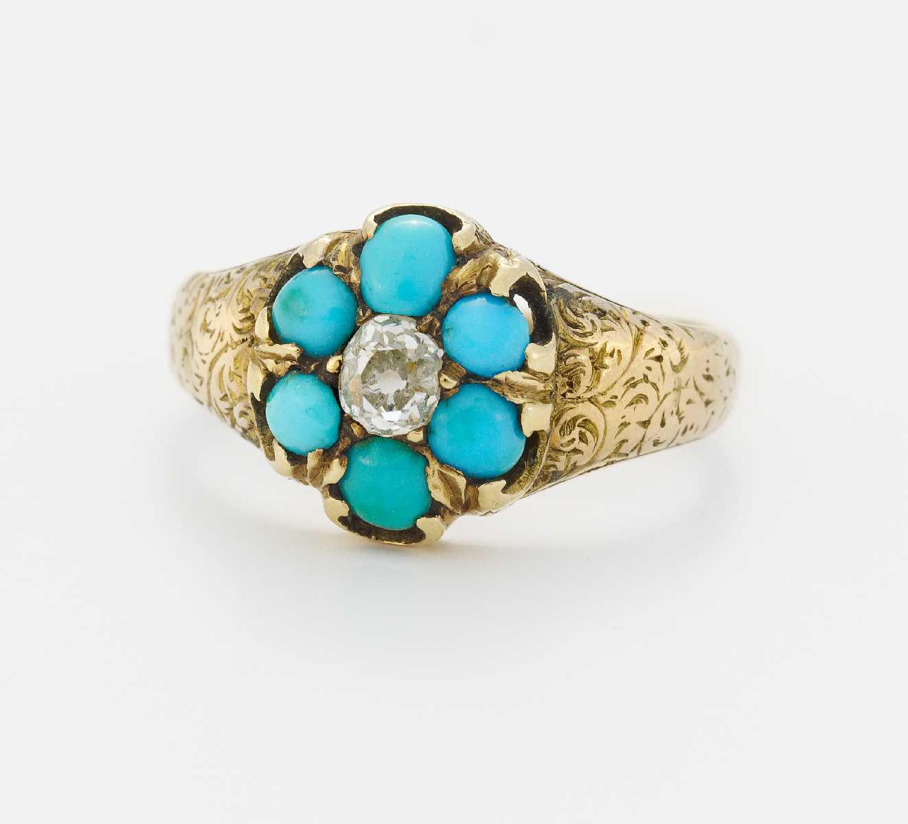Floraler Türkis-Diamant-Ring.