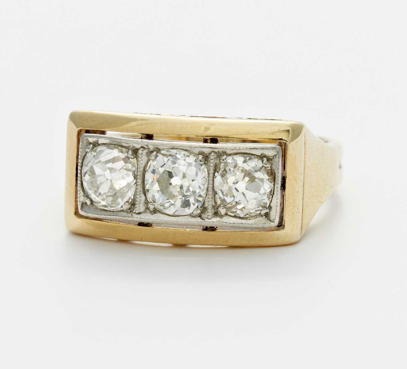 585/- Gelbgold, gestempelt, Gewicht: 5,8g. 3 Altschliff-Diamanten zus.ca. 1,28ct, EU-RM: 57.