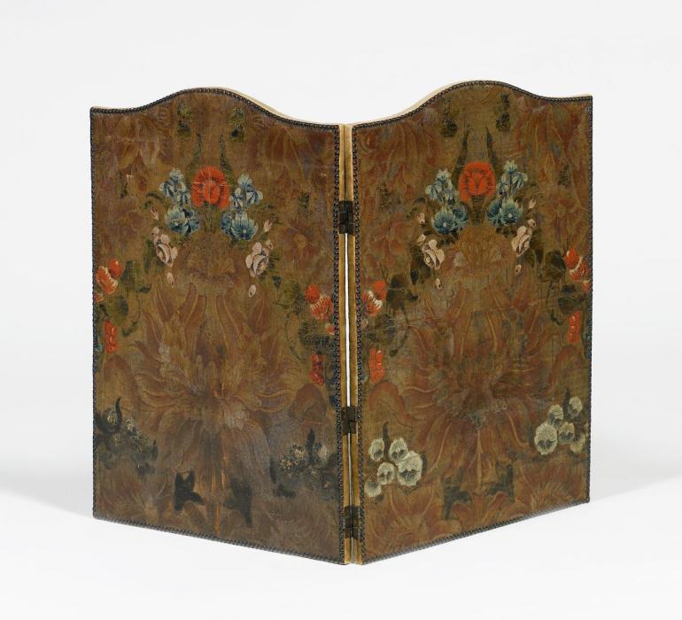 Geprägte Ledertapete. Zwei Elemente je 87 x 64cm. Zustand C.