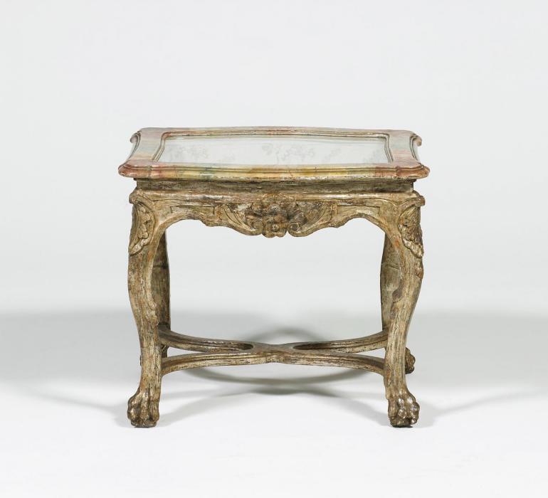 Holz geschnitzt und gefasst. 51x59x49cm. Zustand B.
