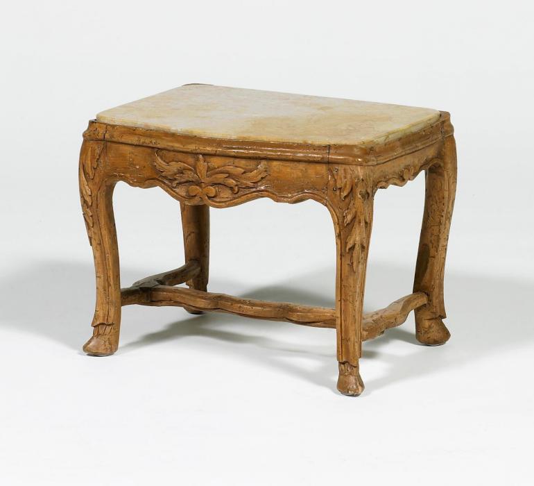 Kleiner Beistelltisch. Frankreich. Tlw. 18.Jh. Eiche geschnitzt. Marmorplatte. 40x50x40cm. Zustand B/C.