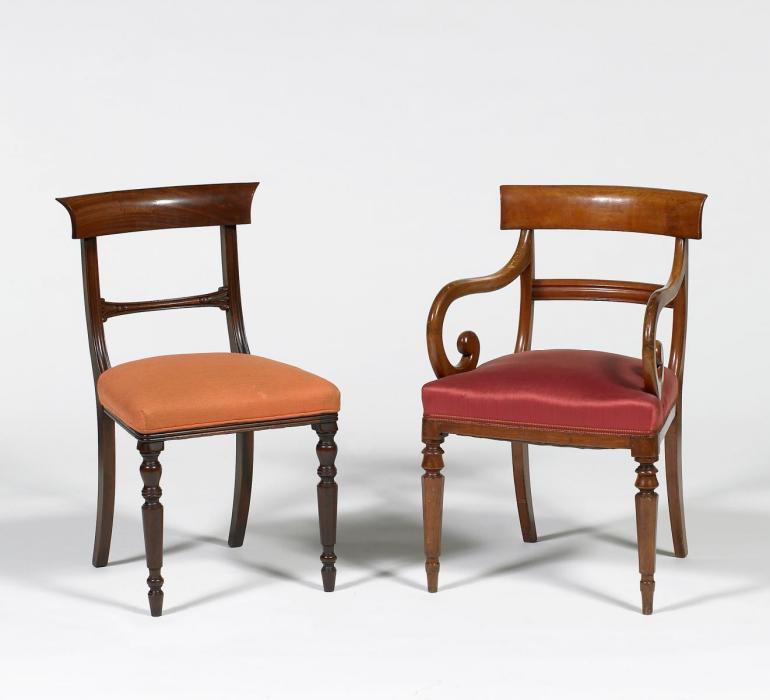 Mahagoni. Gepolstert. {Beil.:}Stuhl. H.84cm. Zustand B.