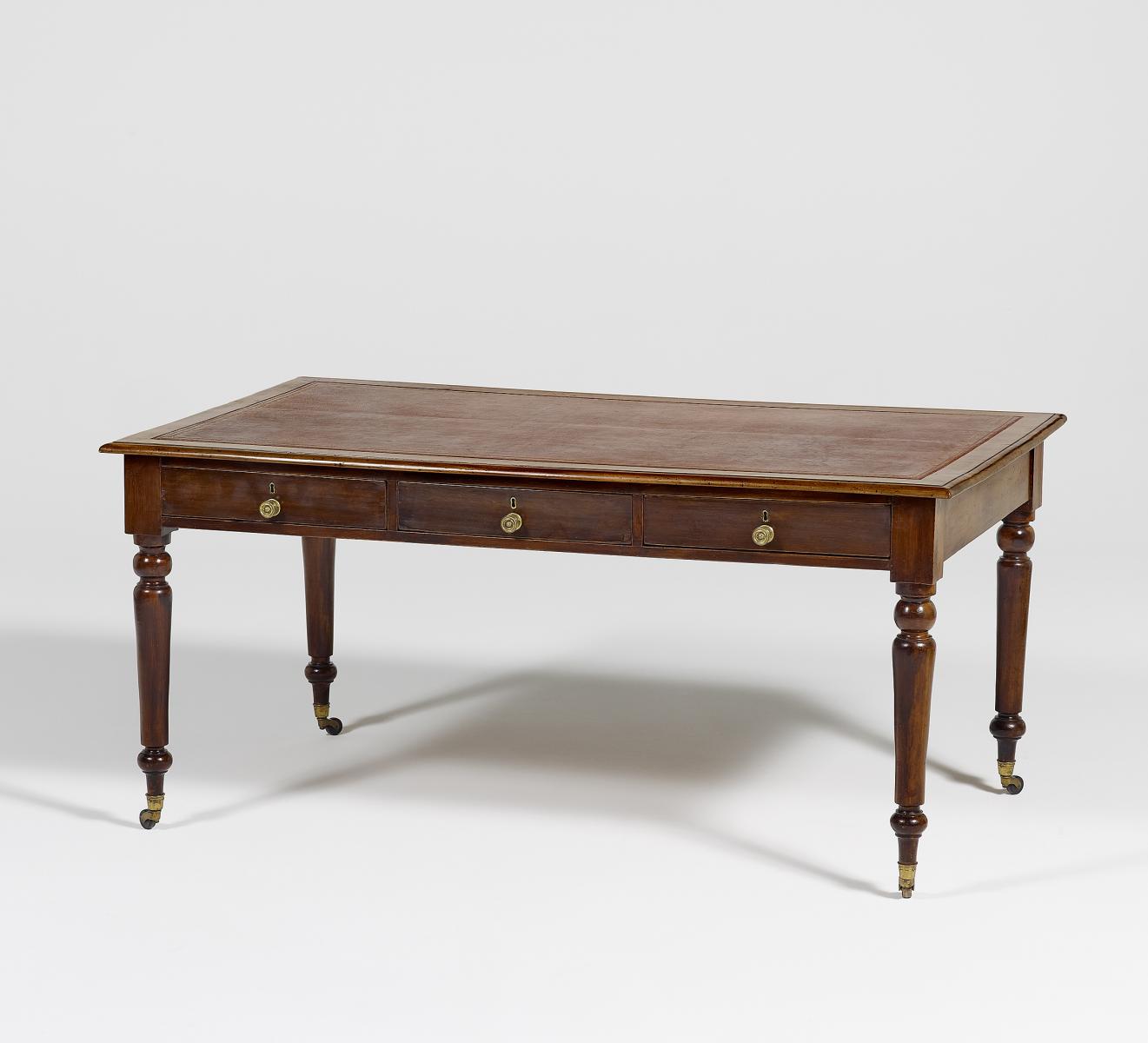 Mahagoni. Geprägte Lederbespannung. 77x168x93cm. Zustand B.