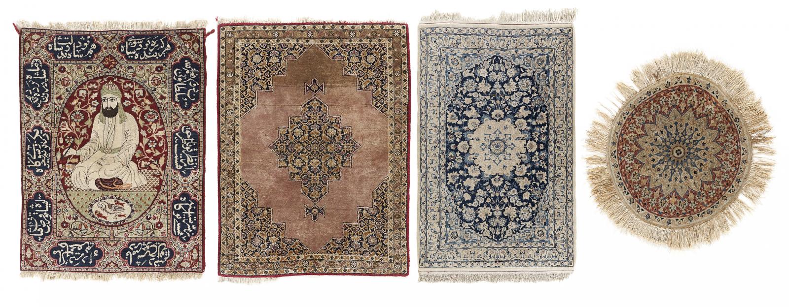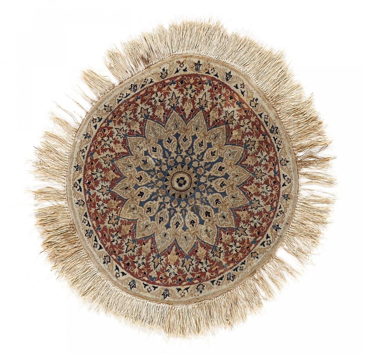 b) Isfahan auf Seide. 20.Jh. Rund, sehr fein. 211 x 135cm. Zustand B/C.