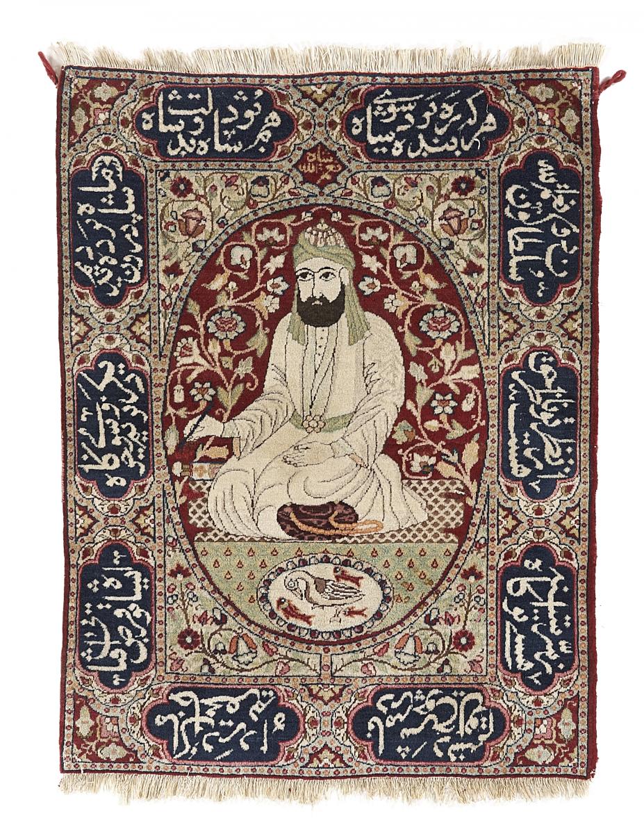 a) Kerman, figural. (Alisnah) Anfang 20.Jh. 81 x 61cm. Zustand B/C.