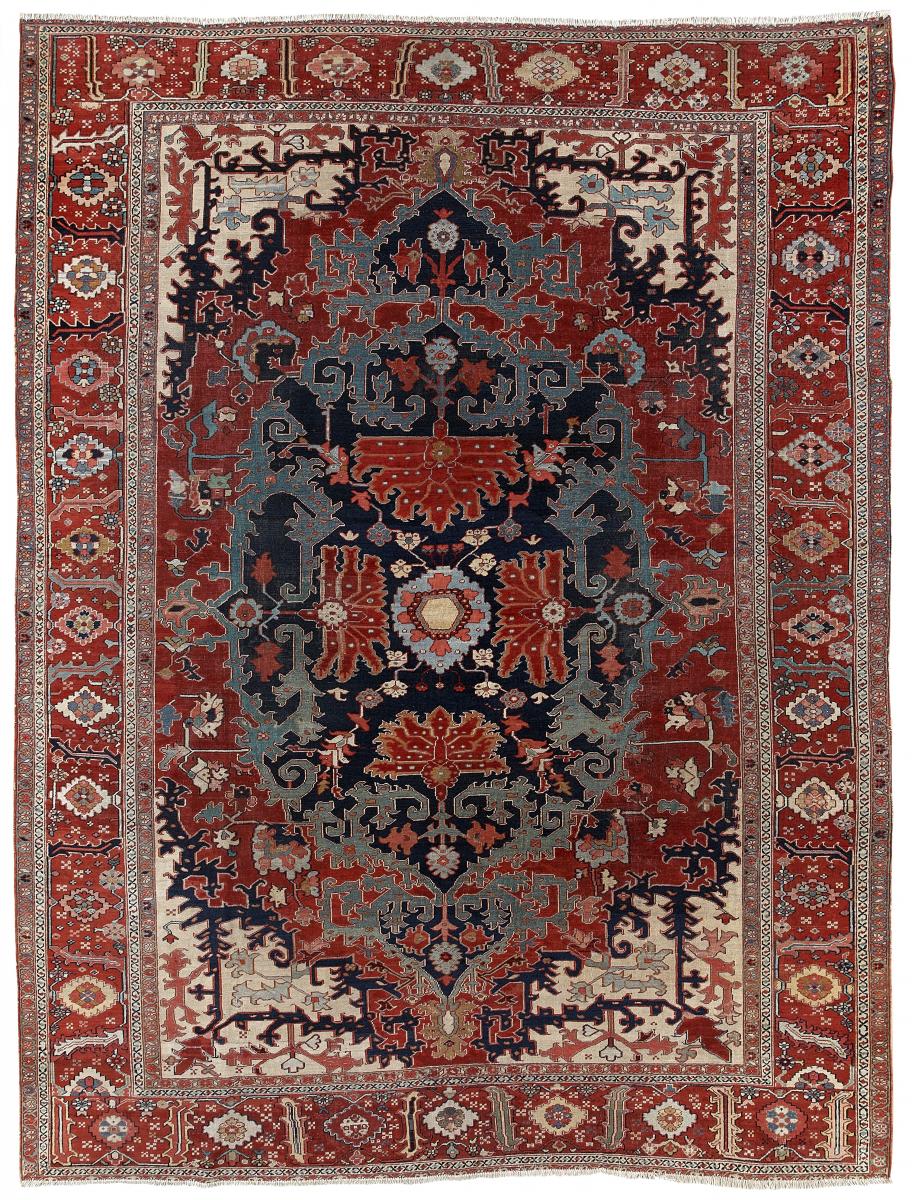 Heris. Um 1900. 392 x 295cm. Zustand C/D. (Im ganzen sehr dünner Flor).