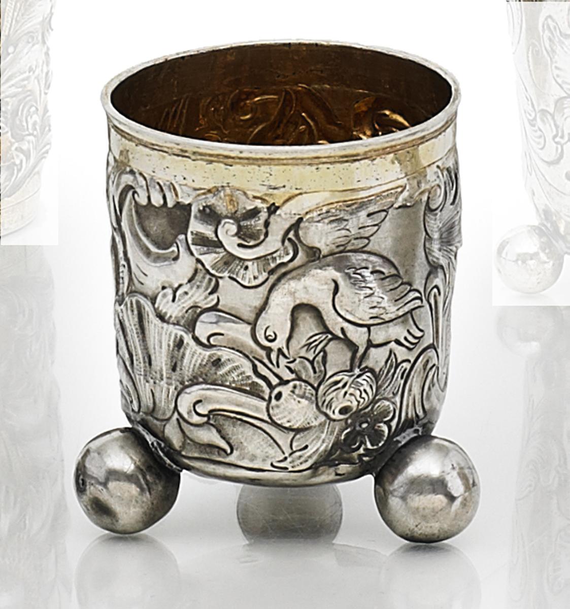 Silber, teilvergoldet sowie Innenvergoldung. Höhe 8cm. Ca. 80g. Zustand C.