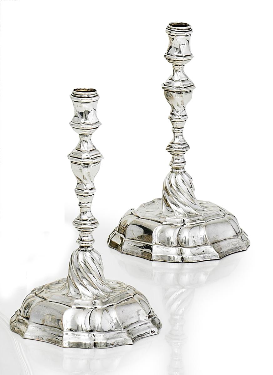 Silber. Mehrfach eingezogener passiger Fuß mit Balusterschaft. Von gemuldeter Fußoberseite