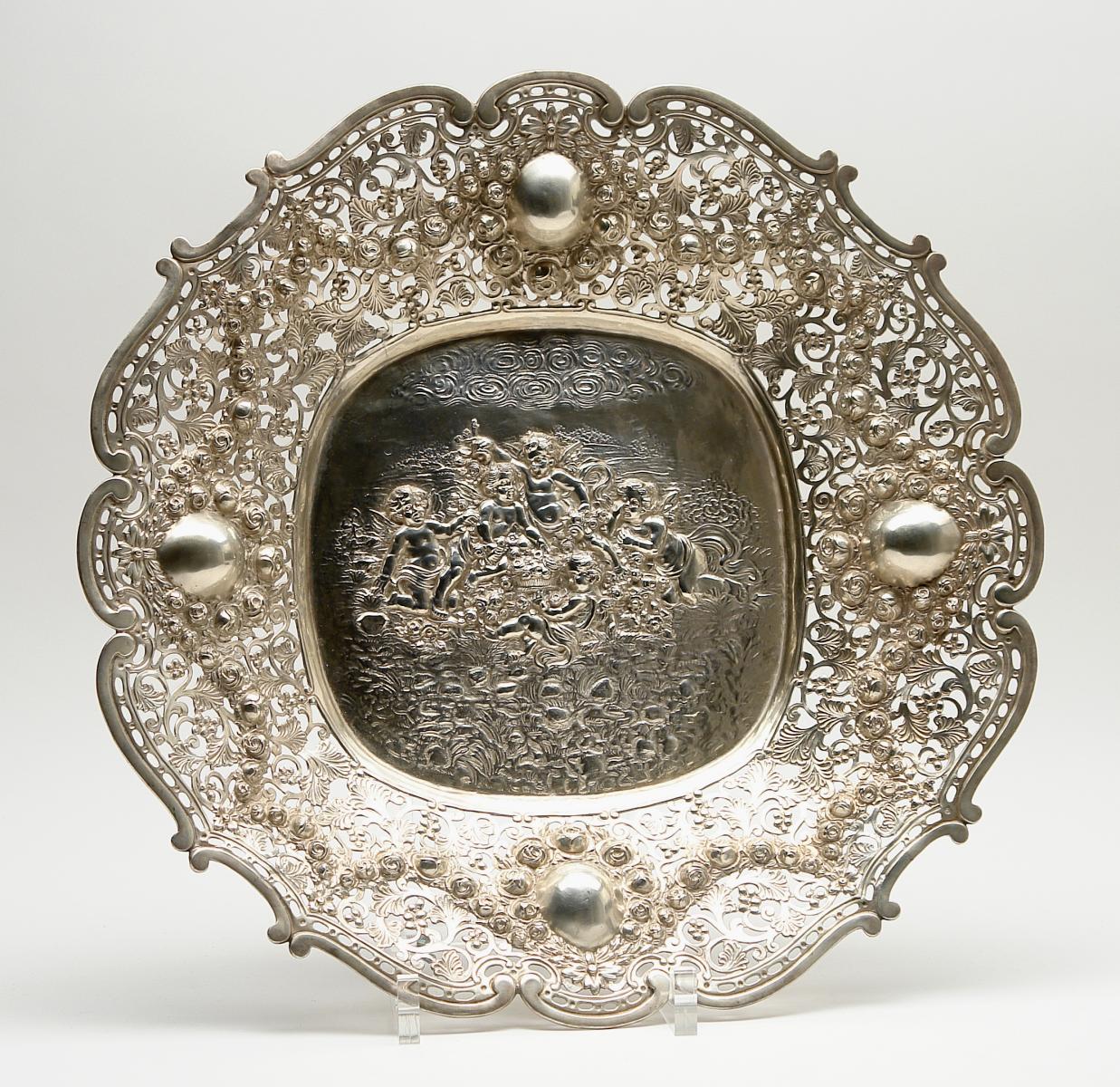 Silber. Höhe 7cm, Ø 47cm. Ca. 1685g. Zustand B.