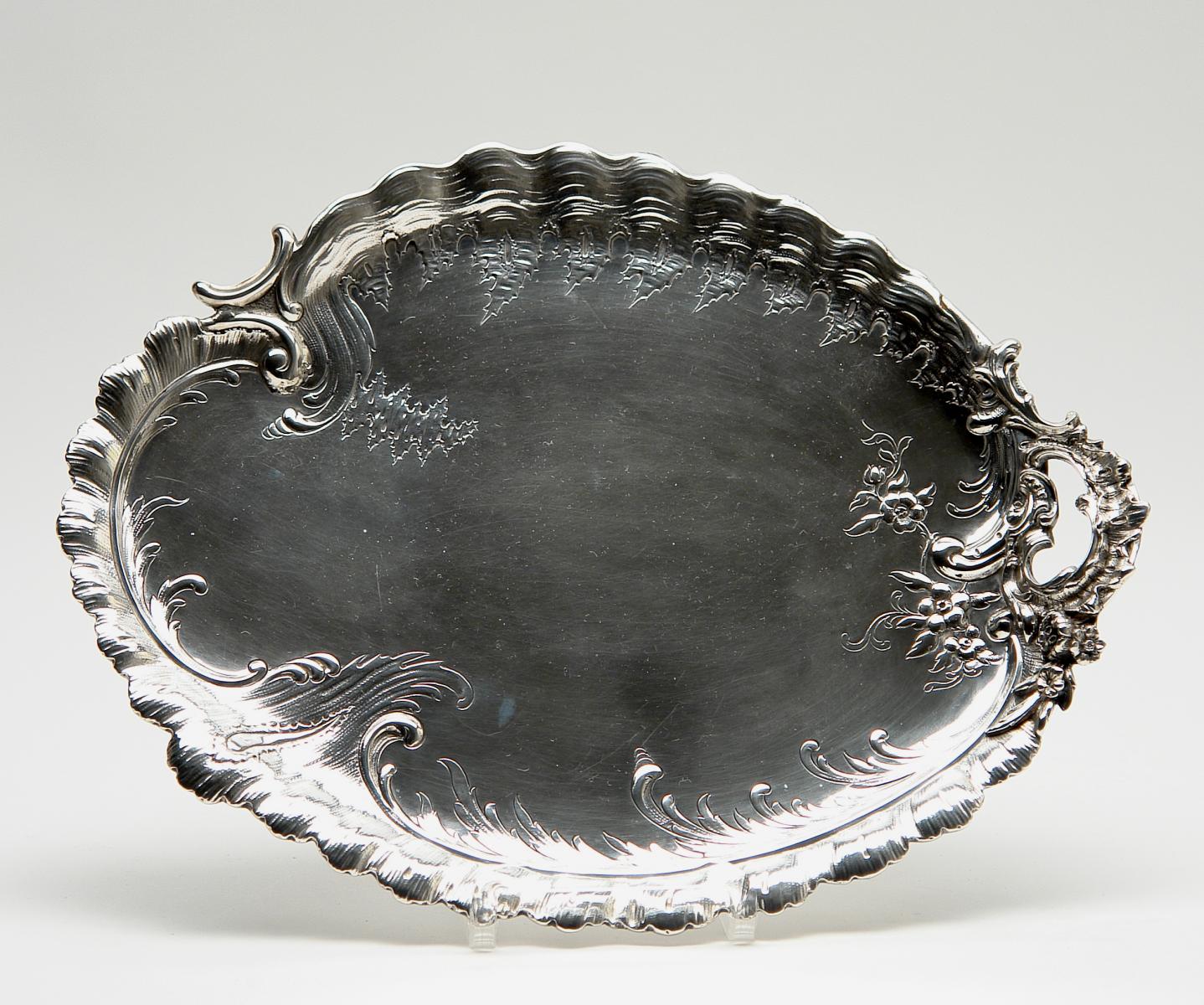 Kleines Tablett mit Rocailledekor.