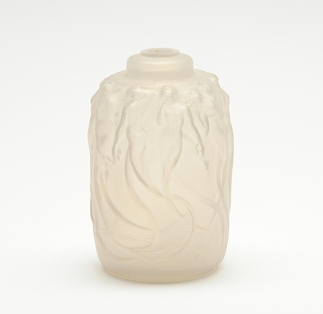 Farblos milchiges Glas, mattgeätzt. Höhe 13,5cm. Zustand A.