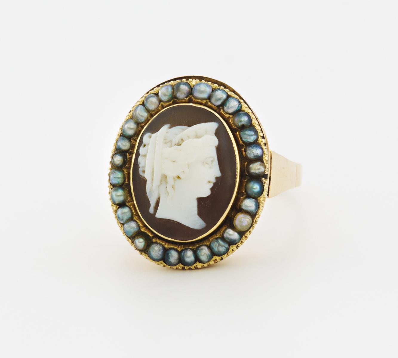 Gezierter Ring mit Kamee-Naturperlbesatz.
