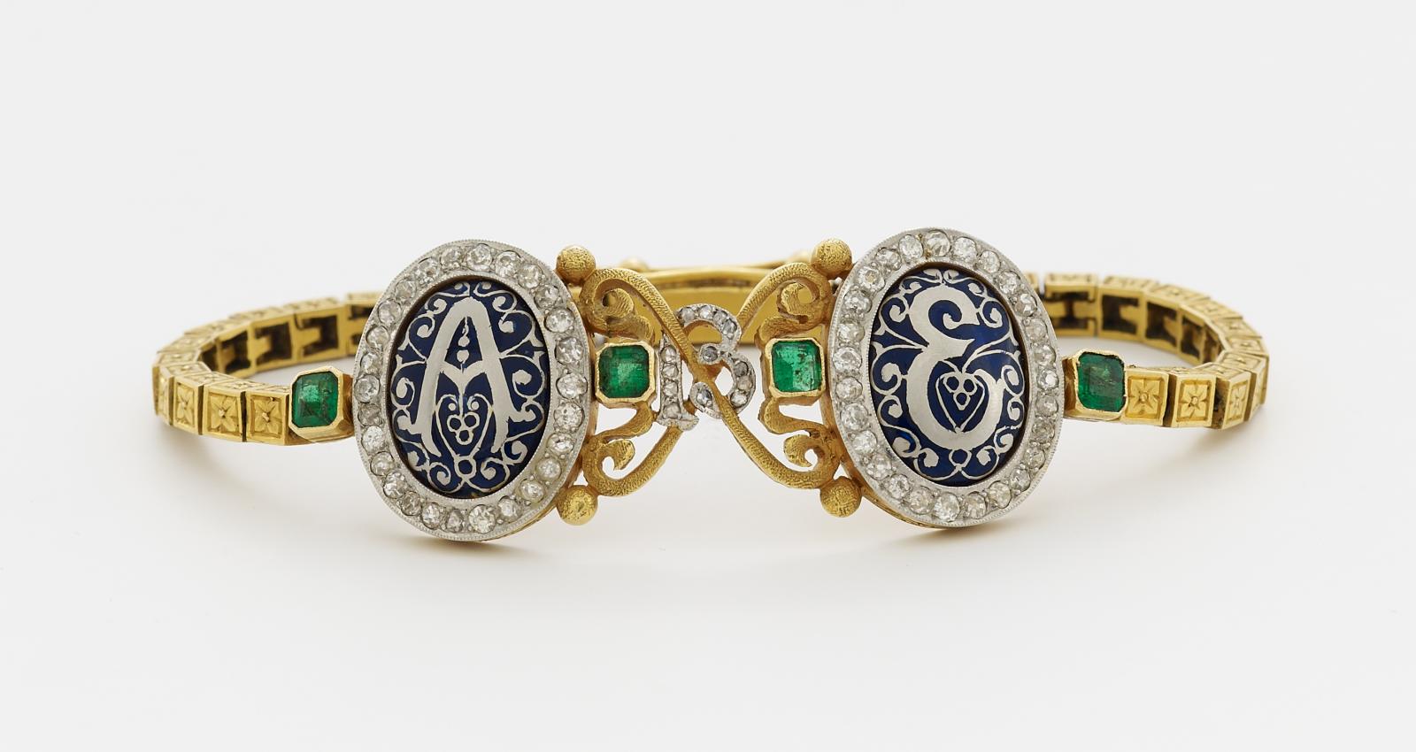 Historismus. Geziertes Armband mit Smaragd-Diamantbesatz.