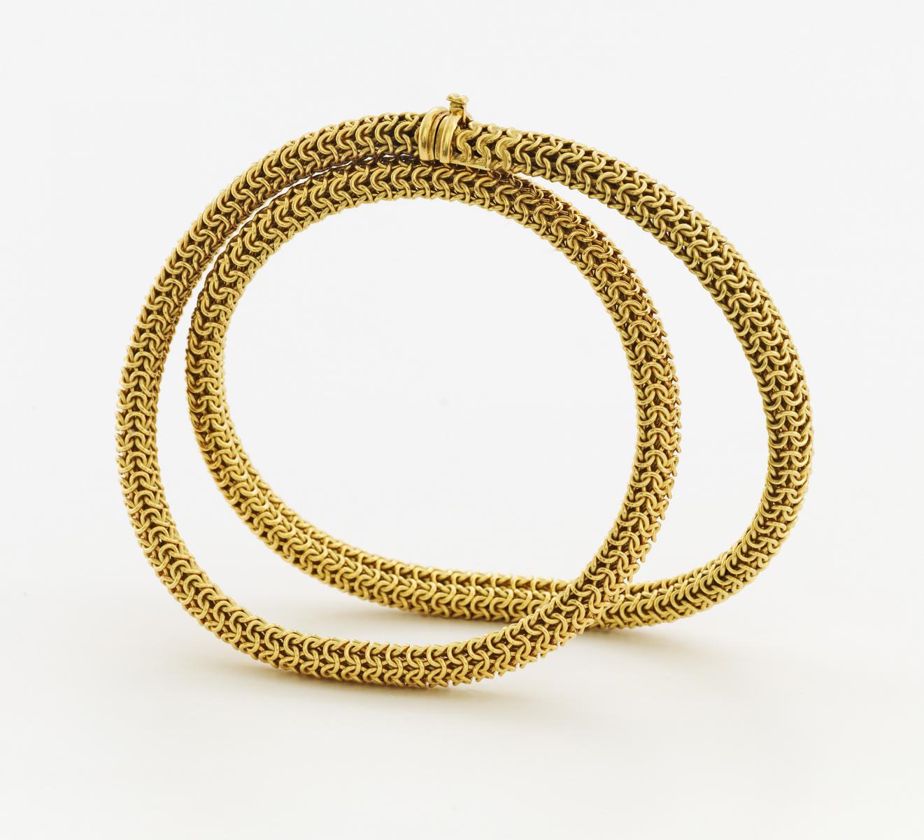750/- Gelbgold, gestempelt. 88,2g. L x B=45,5 x 0,7cm.~