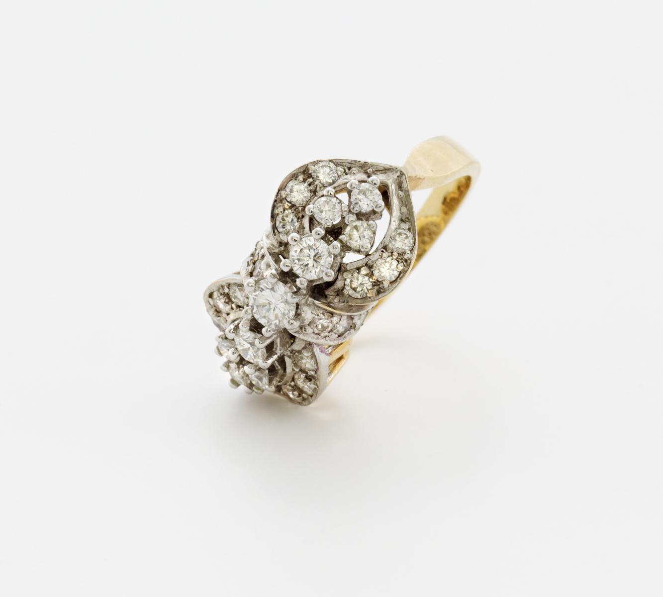 585/- Gelbgold, Fassung: 585/- Weißgold, Gewicht: 6,0g. 27 Brillanten zus.ca. 0,876ct Tchry(I)VS2-SI, EU-RM: 51,5.