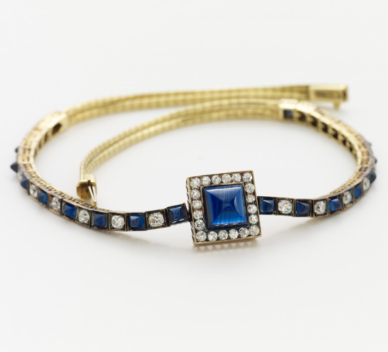 Art Deco. Collier de Chien mit synthetischen Saphiren-Diamantbesatz.