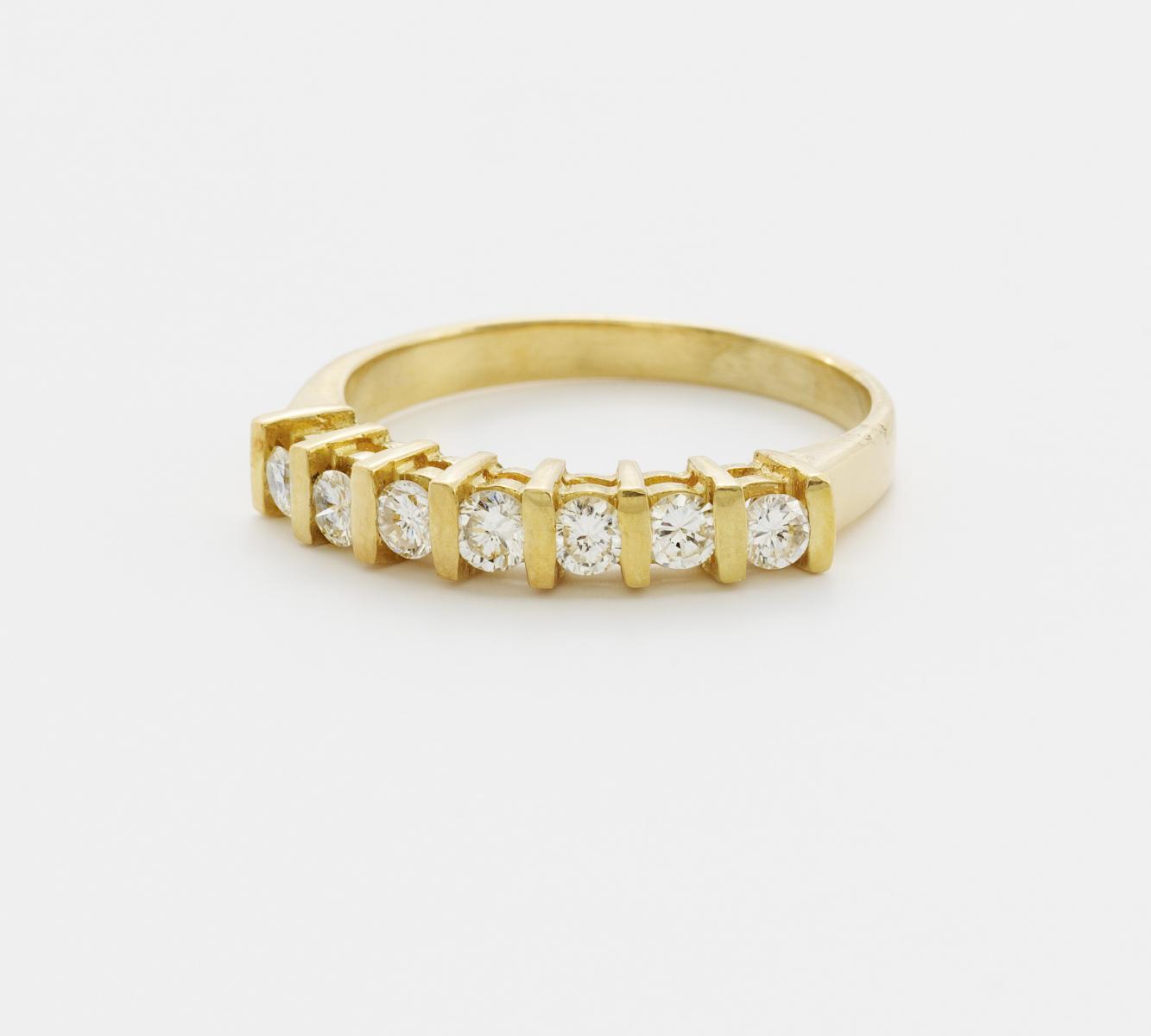 585/- Gelbgold, Gewicht: 4,0g. 7 Brillanten zus.ca. 0,56ct TChry(I-J) VVS, EU-RM: 58,5.