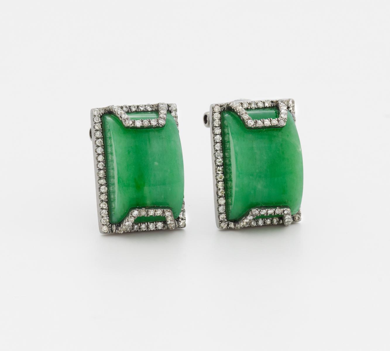 Ohrstiftclipse mit Imperial Jade-Brillantbesatz.