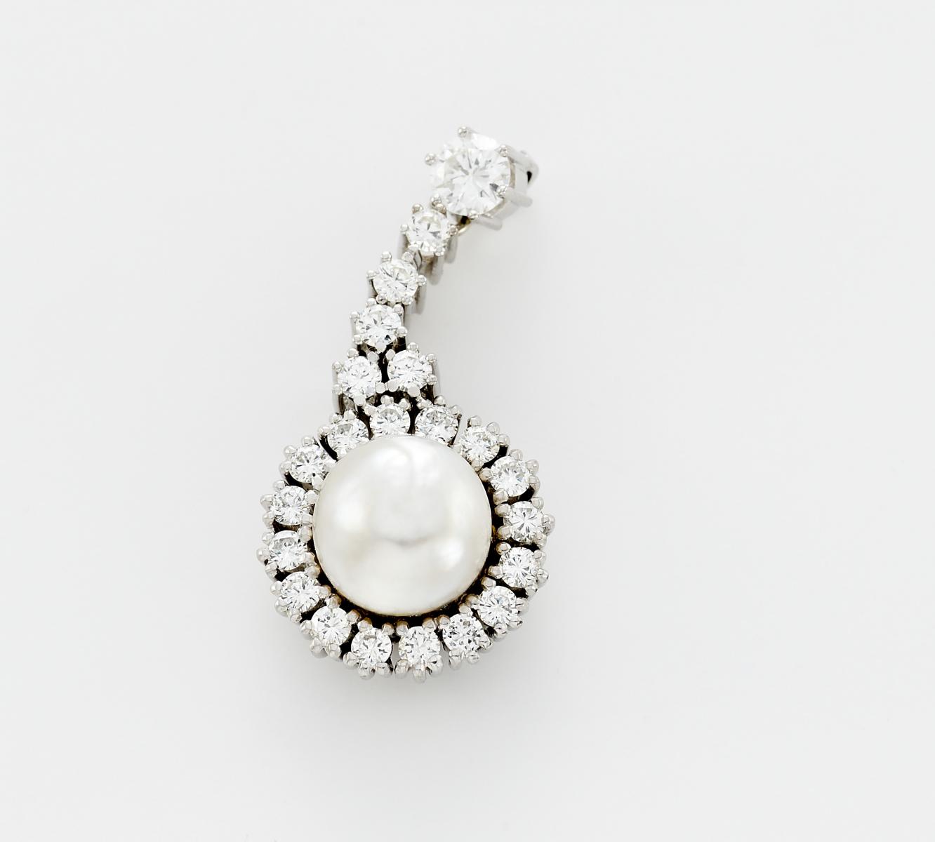 Kettenanhänger mit Naturperl-Brillantbesatz.