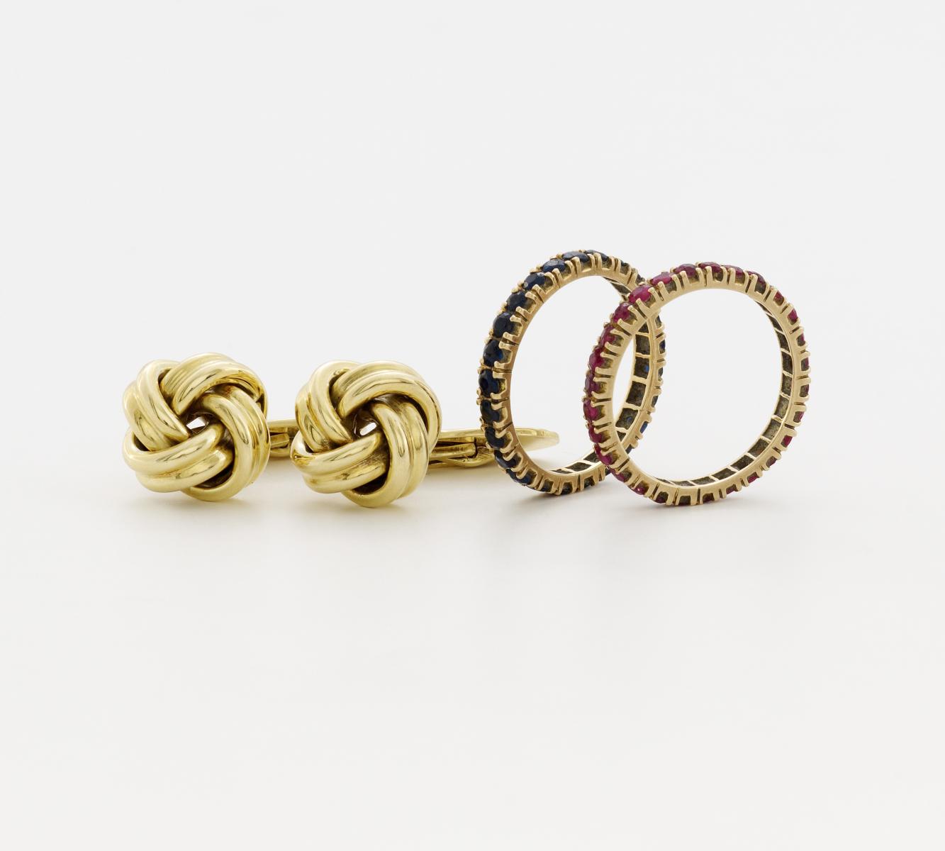 Konvolut: 2 Memoryringe, 1 Paar Manschettenköpfe.
