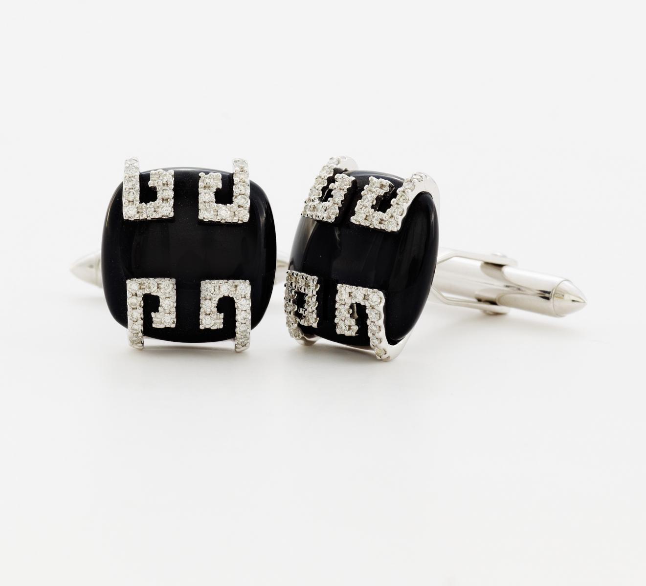 Gezierte Manschettenknöpfe mit Onyx-Brillantbesatz.