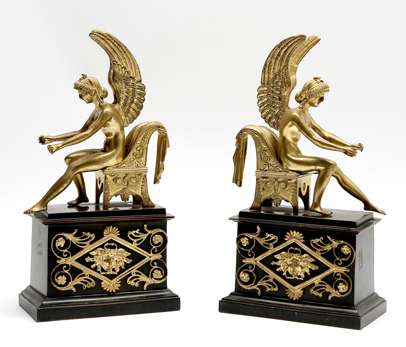 Bronze patiniert und tlw. vergoldet. Rechteckiger Sockel, darauf auf Stuhl sitzende Viktoria. H.33cm. Zustand B.