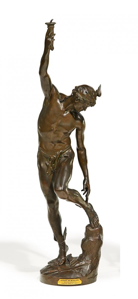 Bronze patiniert. Standfigur. Plakette bezeichnet Depart De Mercure Prix De Concours École Des Beaux Arts