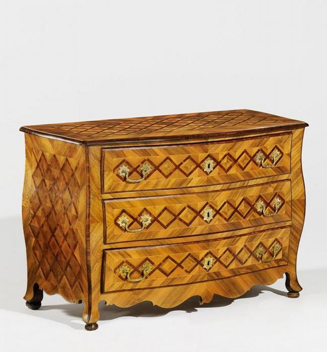 83x122x62. Dreischübiger bombierter Korpus mit Rauteneinlagen. Zustand B.