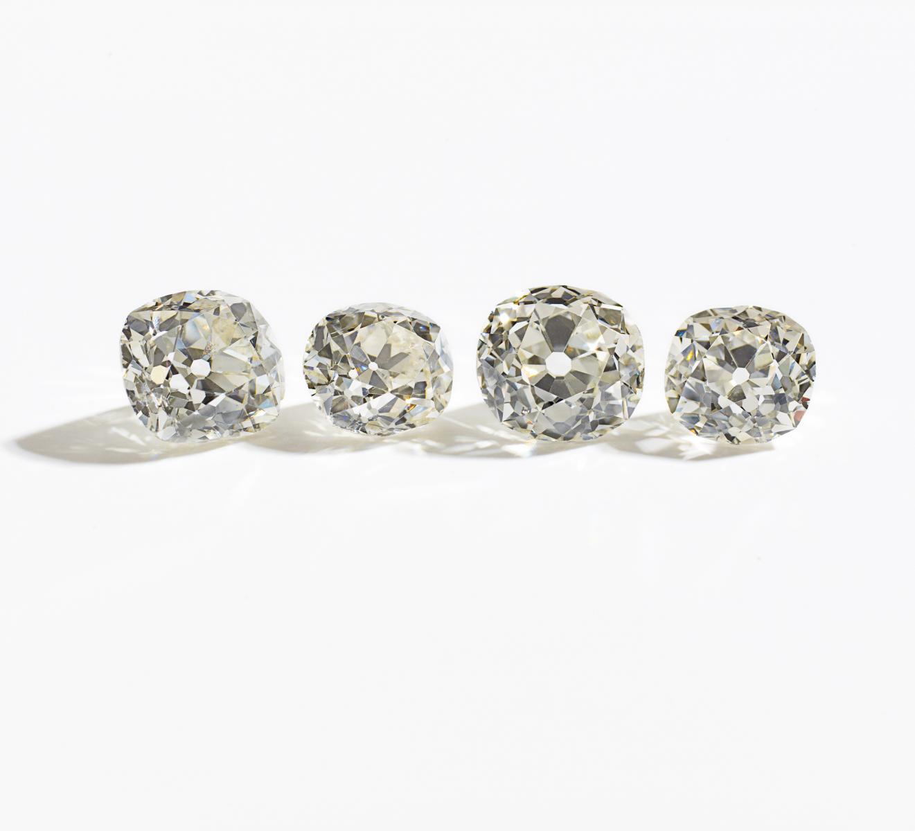 1 Altschliff-Kissen ca. 0,823ct W(H) SI2, 1 Altschliff-Kissen ca. 0,449ct TCr+(I) SI1, 1