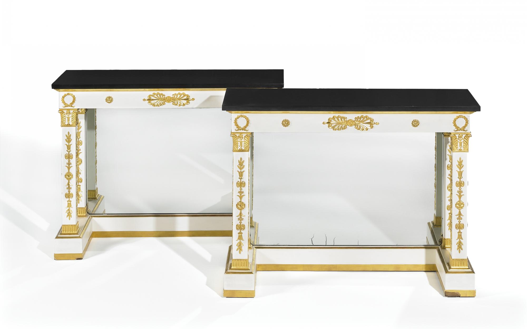Eiche, weiß und gold gefasst. Marmorplatte.