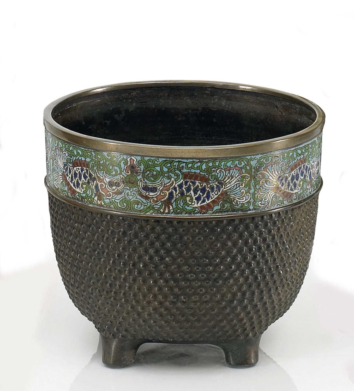 Bronze und farbiges Email.