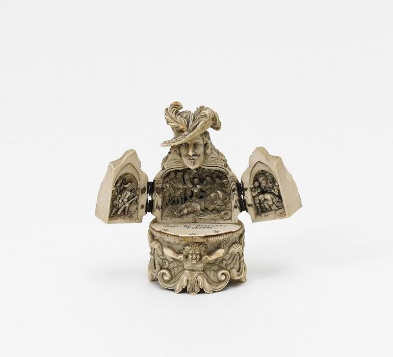Höhe 13. Brustpartie aufklappbar, Innnen Darstellung des gefallenen Feldherrn. Innen bez. 'Mort De Marechal Turenne'cm.