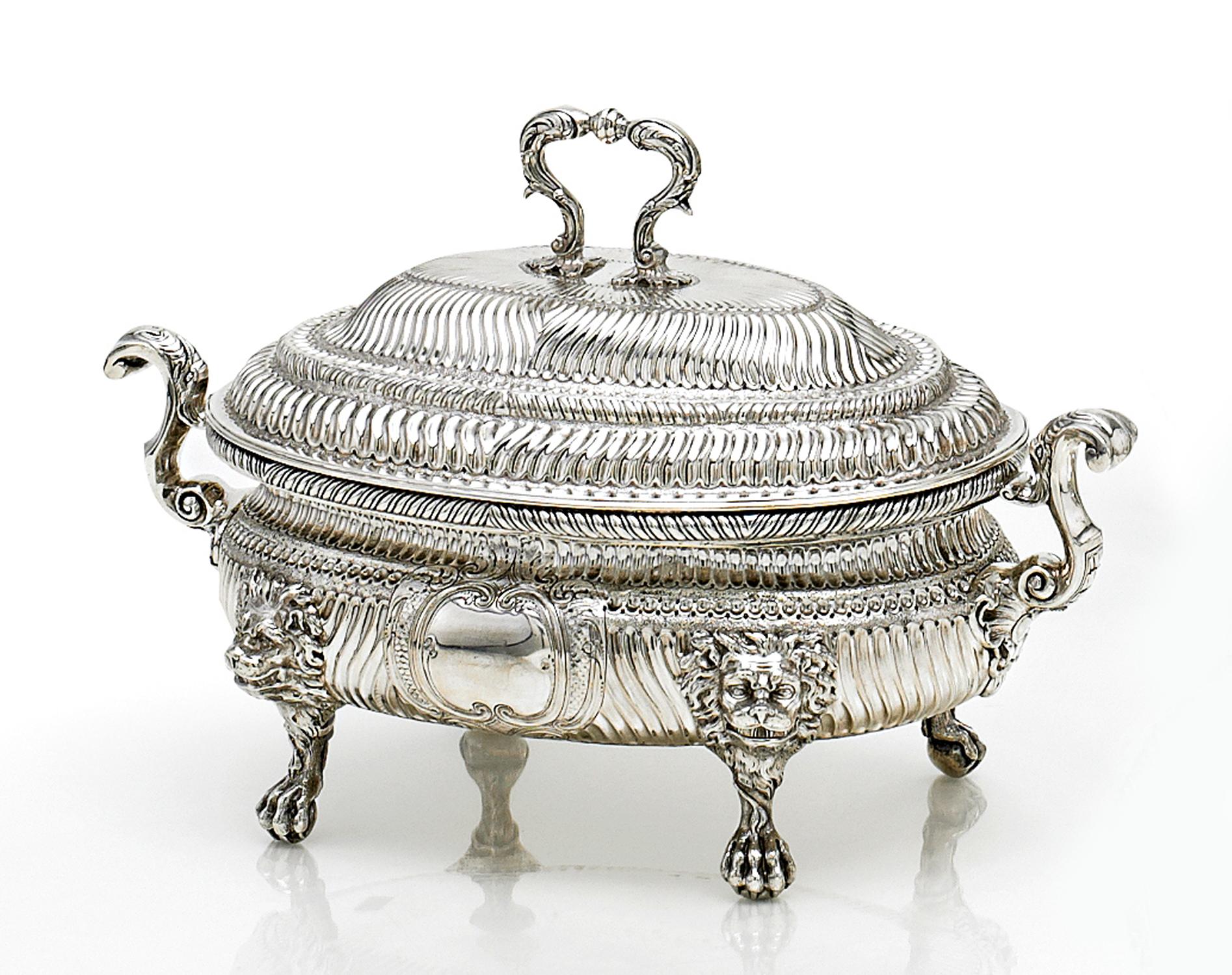 GROßE GEORGE II TERRINE MIT LÖWENFÜßEN.