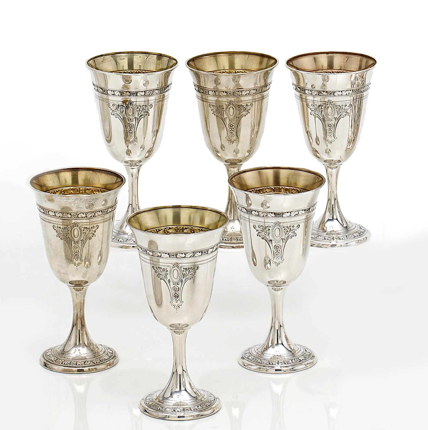 SATZ VON SECHS KELCHEN MIT RELIEFDEKOR.