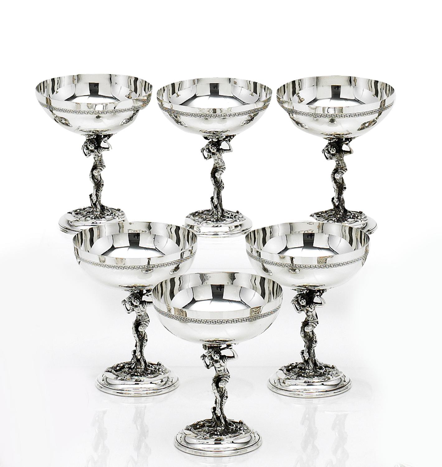 SATZ VON SECHS EISSCHALEN MIT SATYR.
