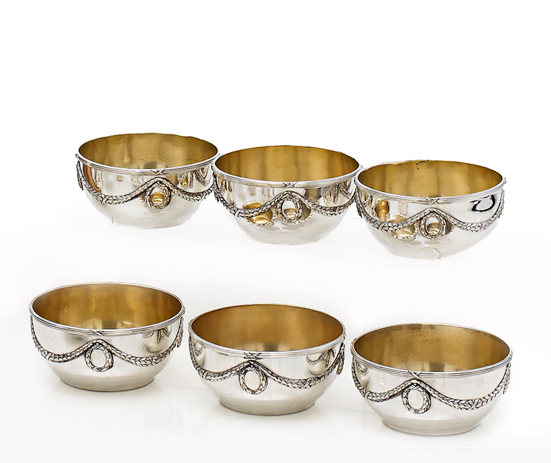 SECHS FINGERSCHALEN MIT LORBEERGIRLANDEN.