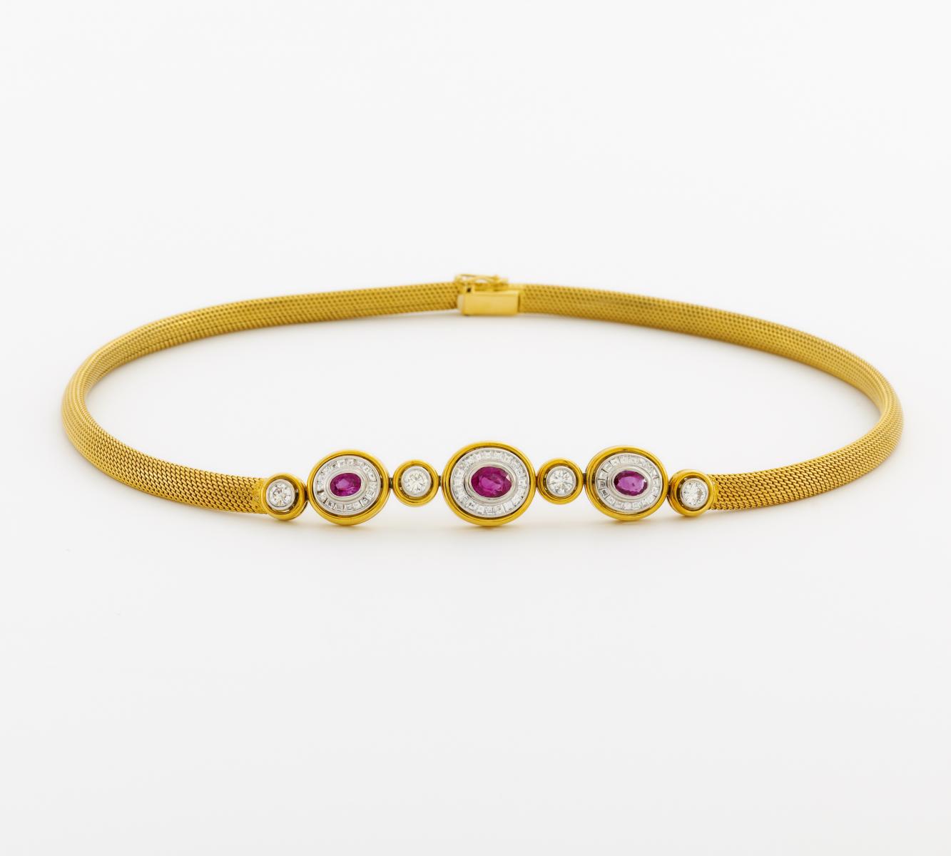 Juwelencollier mit Rubin-Diamantbesatz. 750/- GELB-/WEIßGOLD.