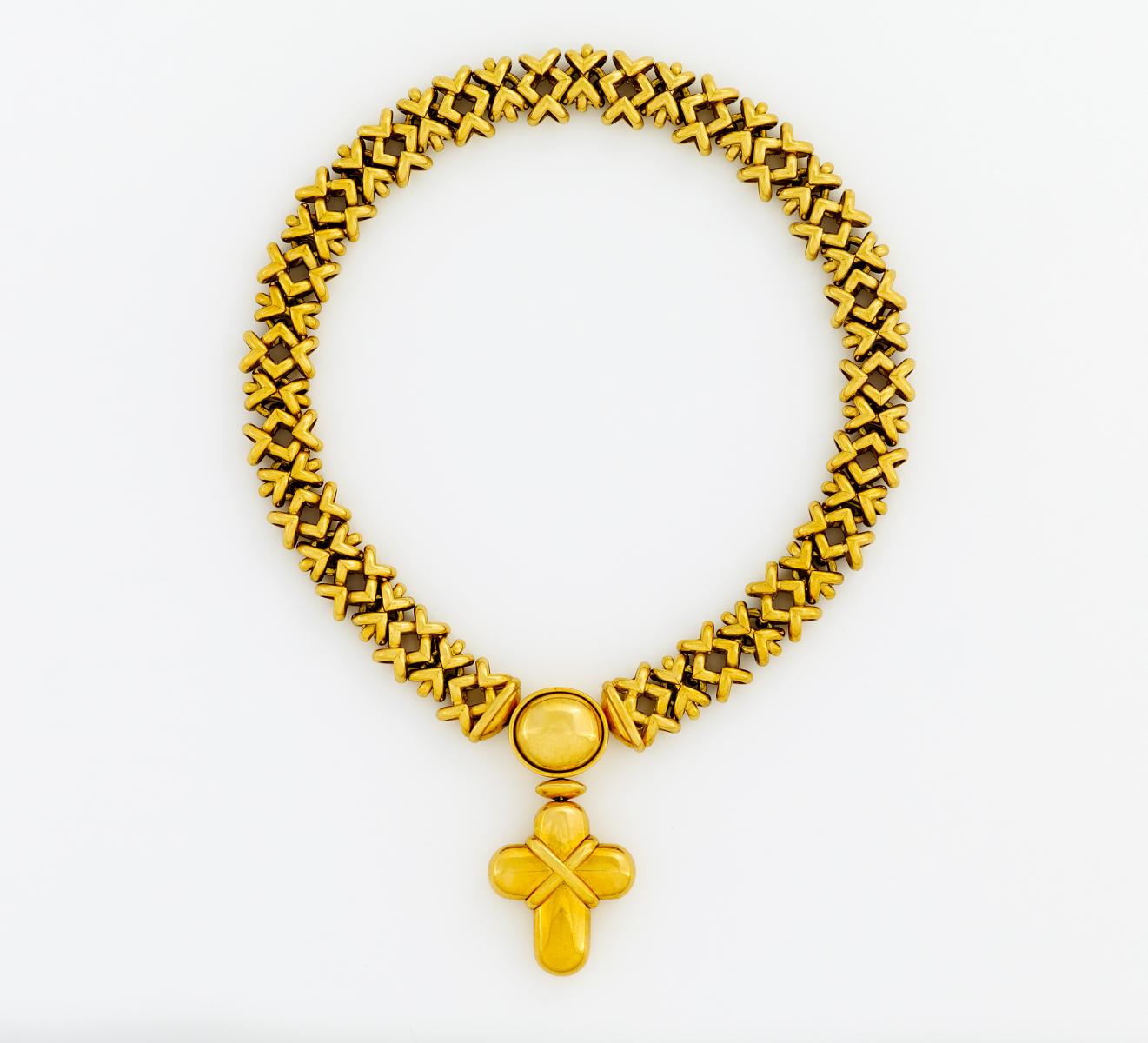 Massives Collier mit Kreuz-Anhänger. 750/- GELBGOLD.