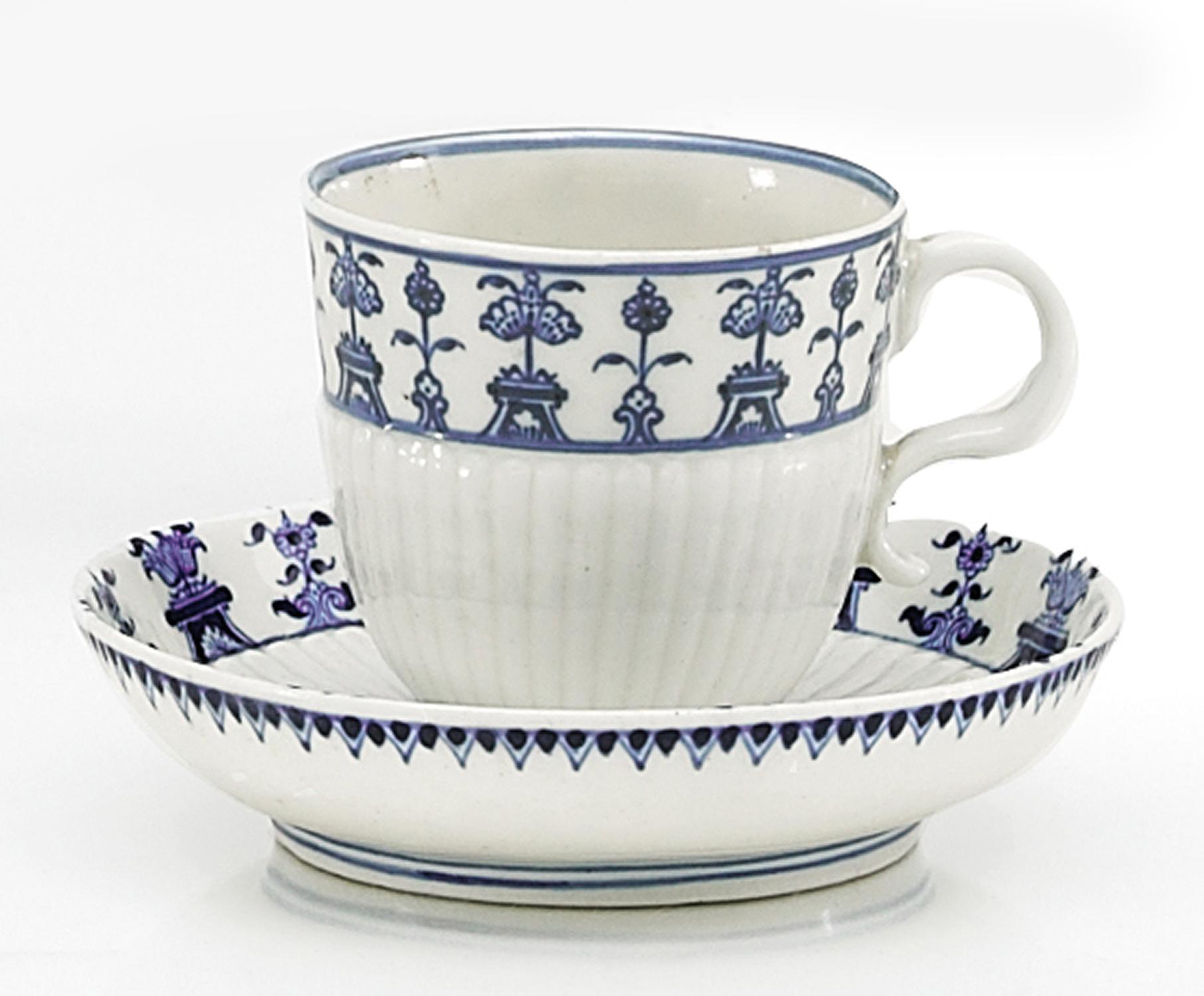 BECHERTASSE UND UNTERSCHALE MIT BLÜTENFRIES.