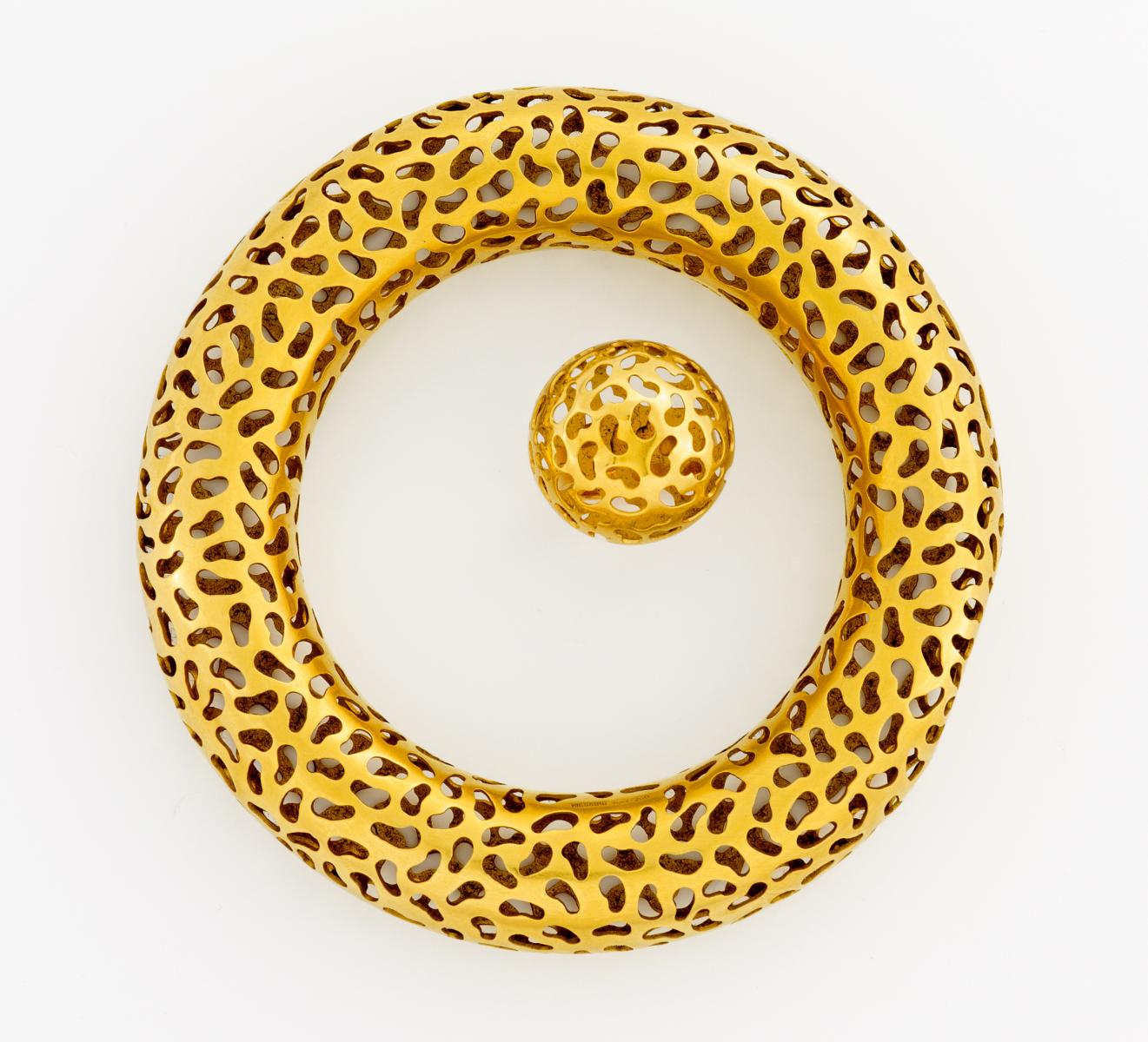 Set: Moderner Amreif und Ring, Niessing. 750/- GELBGOLD.